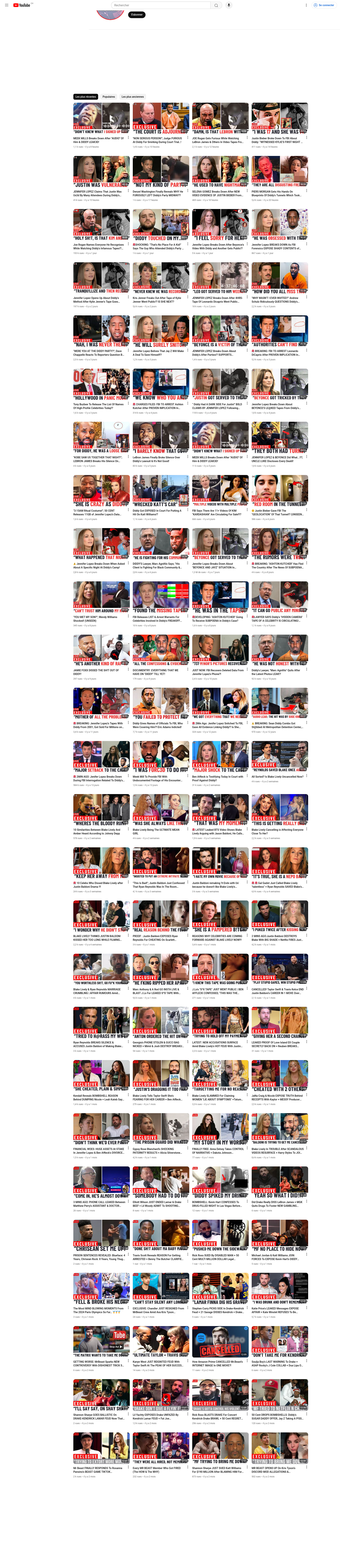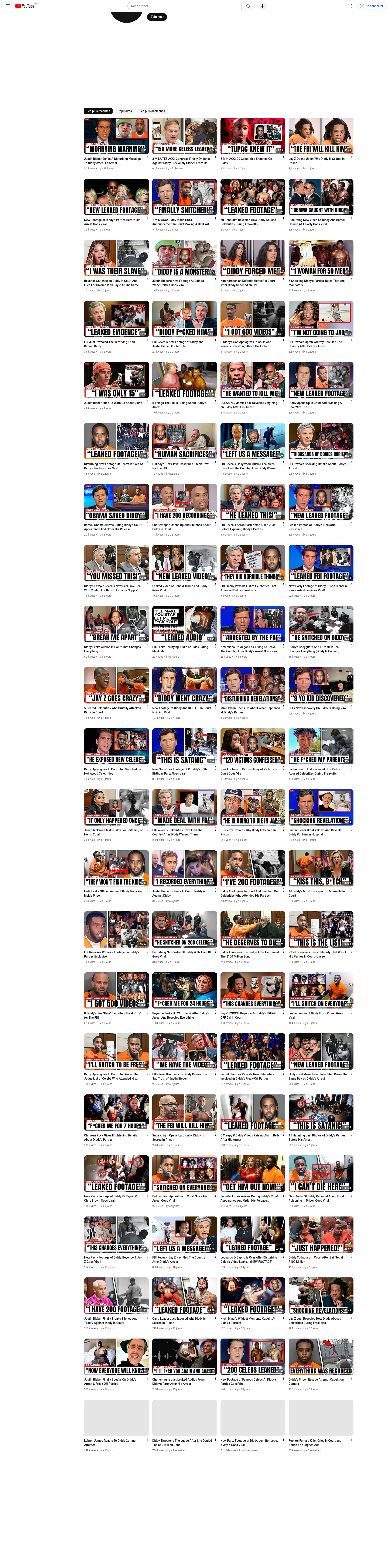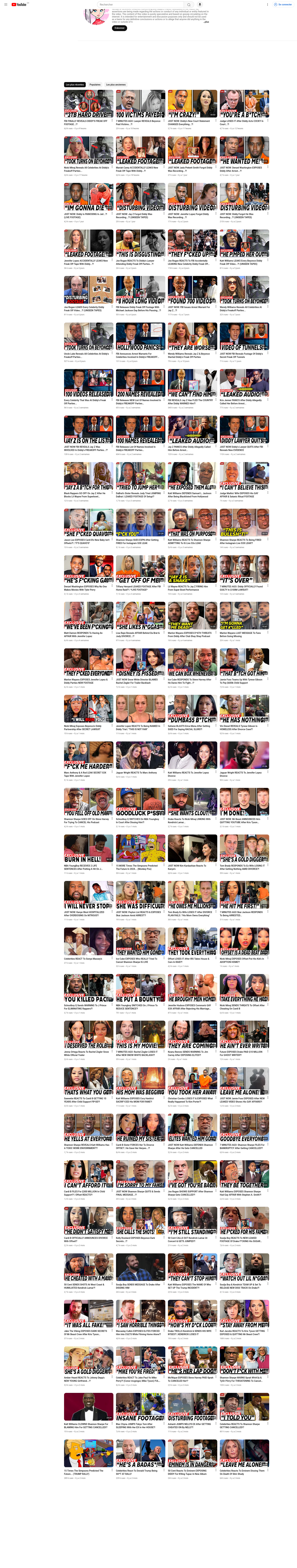 Un petit panel de faux comptes récents, avec des printscreens géants de leurs vidéos autour du scandale P. Diddy, et vidéo précédentes d'autres sujets. Chaque image est une image de taille très grande. Après avoir cliqué dessus, utiliser le menu contextuel "Click-droit" et vous pouvez choisir d'ouvrir l'image ("Ouvrir l'image dans un nouvel onglet"), puis de zoomer dessus (Click-gauche).